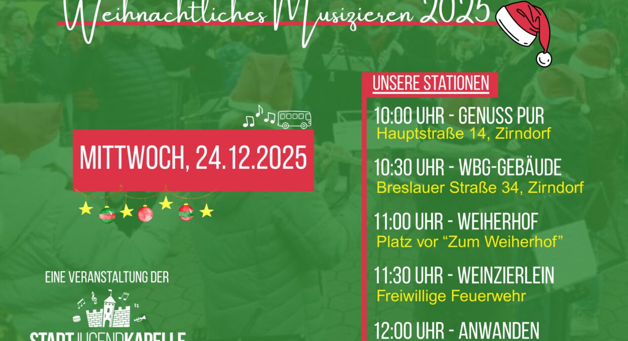 Die Stadtjugendkapelle Zirndorf lädt ein zum Weihnachtlichen Musizieren! 🥳🎄🎶